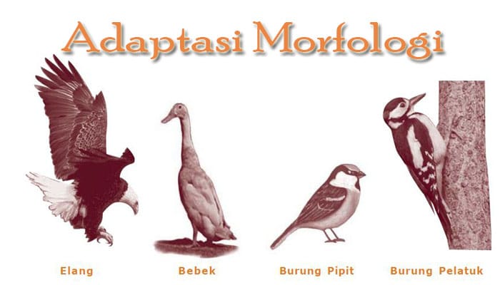 Burung adalah contoh paling klasik dari adaptasi morfologi. Bentuk paruh mereka menyesuaikan dengan jenis makanan dan lingkungan tempat hidupnya. Burung elang misalnya, memiliki paruh tajam dan melengkung untuk mengoyak daging mangsanya. Sementara burung kolibri memiliki paruh panjang dan ramping untuk menghisap nektar dari bunga.