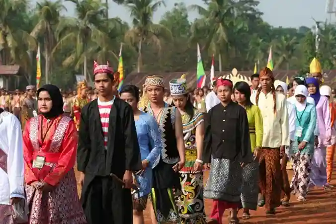 Dalam parade Hari Kemerdekaan, anak-anak dari berbagai suku memakai pakaian adat yang dipadukan dengan warna merah putih, simbol kebersamaan bangsa yang menyatu dalam perbedaan.